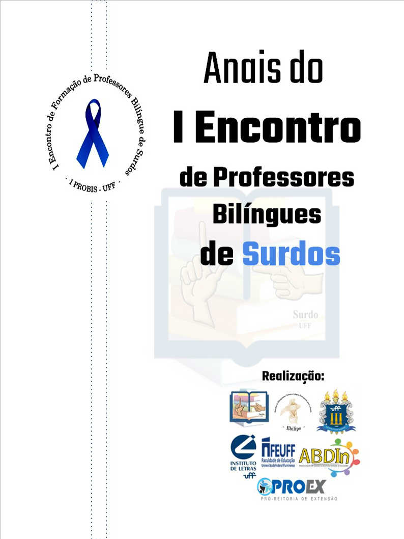 Estes Anais têm como objetivo documentar formalmente e divulgar as reverberações, discussões e experiências do I Encontro de Professores Bilíngues de Surdos — I Probis UFF. O evento aqui registrado foi idealizado e organizado por membros da equipe do projeto de extensão O Ensino de Surdos sobre a Perspectiva Bilíngue, ação vinculada à Proex UFF. A comissão organizadora foi composta por estudantes da graduação ou pós-graduação da UFF, UERJ, UFRJ e IFF sob orientação da professora M.ª Tathianna Dawes, docente de Libras na UFF. Esta publicação trará o compilado das produções oriundas das apresentações de pôsteres, minicursos e palestras acontecidas no evento. Esperamos que esta leitura possa ser proveitosa e gerar boas reflexões. Boa leitura.