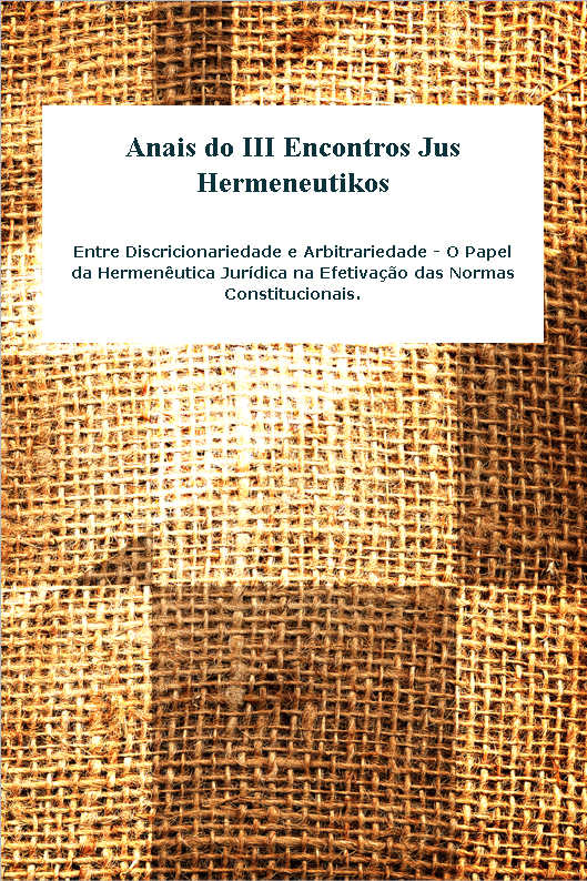 O Grupo de Estudos e Pesquisa em Hermenêutica Constitucional tem o imenso prazer de presentear a comunidade acadêmica com a primeira publicação dos Anais do III Encontros Jus Hermeneutikos. Ocorrido no dia 06 de Maio de 2017, o evento teve como temática central: Entre discricionariedade e arbitrariedade – o papel da Hermenêutica Jurídica na Efetivação das Normas Constitucionais. Além das diversas comunicações orais proferidas pelos professores e pesquisadores convidados (duas das quais se encontram resumidas a termo e publicadas na presente coletânea) o evento teve a oportunidade de receber resumos expandidos de alunos do curso de direito da graduação e da pós-graduação interessados na investigação hermenêutica.