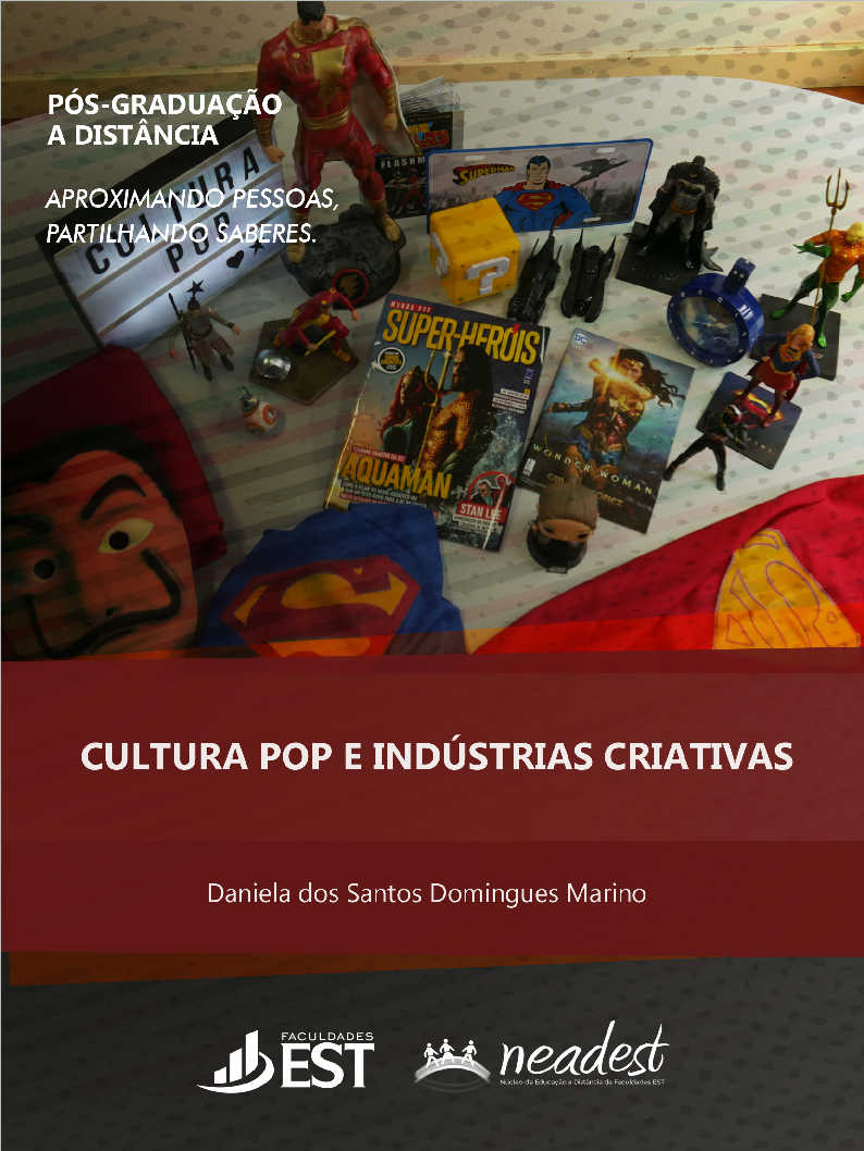 Em “Cultura pop e indústrias criativas” nós nos ocuparemos com a discussão sobre os processos de produção dos bens culturais da cultura pop e suas implicações para a vida em sociedade e nossa percepção sobre arte, cultura e sociedade. Não há como pensar cultura pop, após uma abordagem de seus limites conceituais, sem partir de uma reflexão sobre a produção. Afinal, a cultura pop surge majoritariamente como produtos a serem comercializados, de modo que seu fracasso comercial repercute, na maioria das vezes, na reinvenção ou na extinção, digamos assim (muito embora essa palavra parece um tanto radical). O ponto curioso do estudo da cultura pop, entretanto, reside no fato de que, por ser um produto cultural, os bens gerados e associados à cultura pop lidam com a produção de sentido e a manutenção de universos simbólicos que delineiam os contornos de nossa vida em sociedade e nossa percepção sobre o mundo, o que torna seu estudo complexo e interdisciplinar por princípio.
