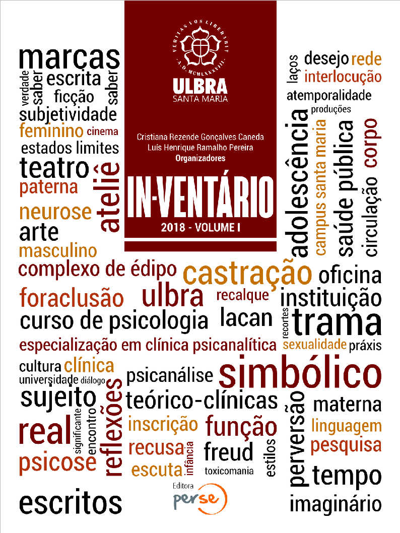 IN-VENTÁRIO. Este é o nome da coleção criada especialmente para o curso de Especialização em Clínica Psicanalítica da ULBRA, Campus de Santa Maria. Neste I Volume, intitulado Coletânea de Temas da Clínica Psicanalítica, a obra reúne vários textos de especializandos(as), egressos e professores da Pós-Graduação. Vale lembrar que esta obra contempla a IV turma de especialização no campus.